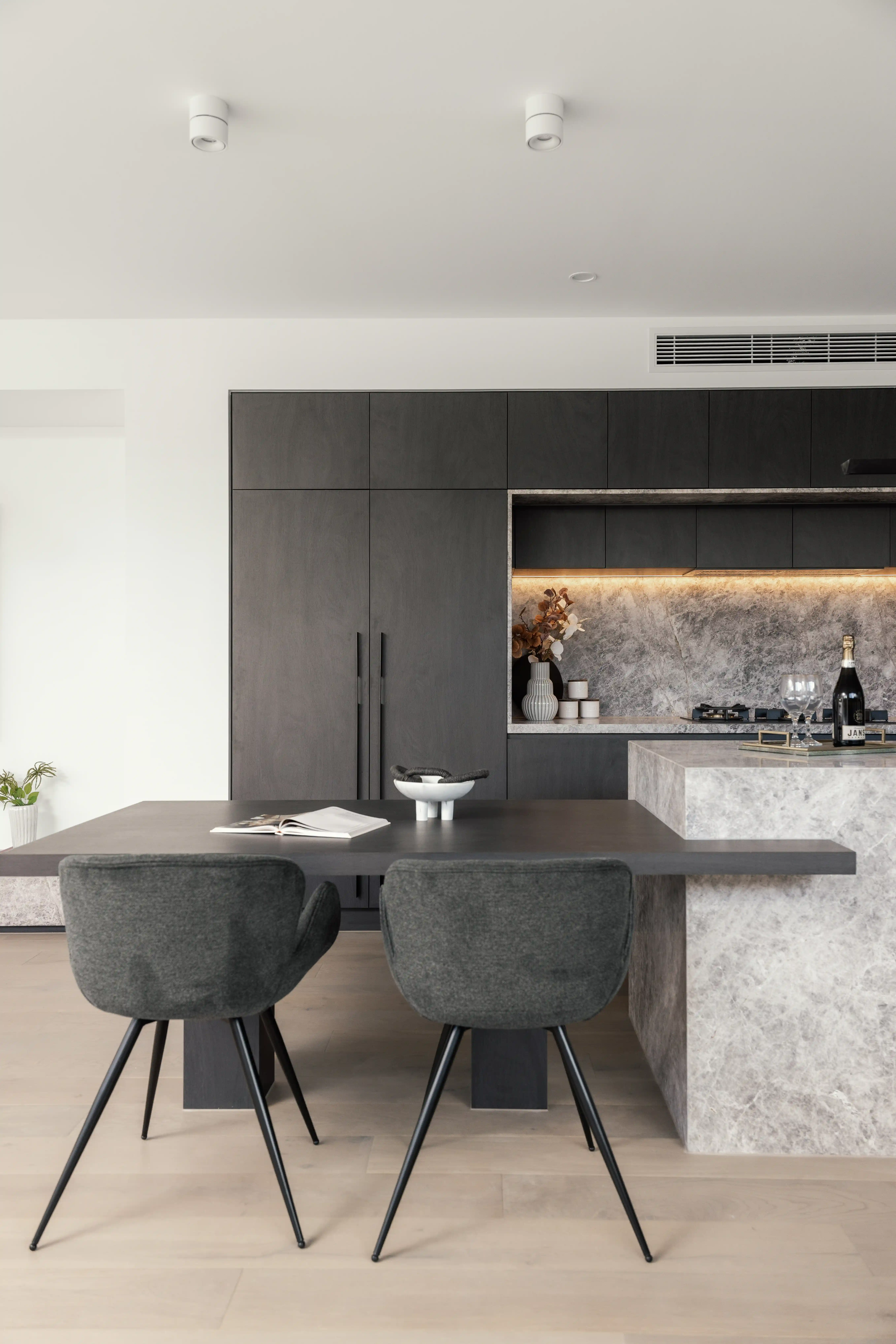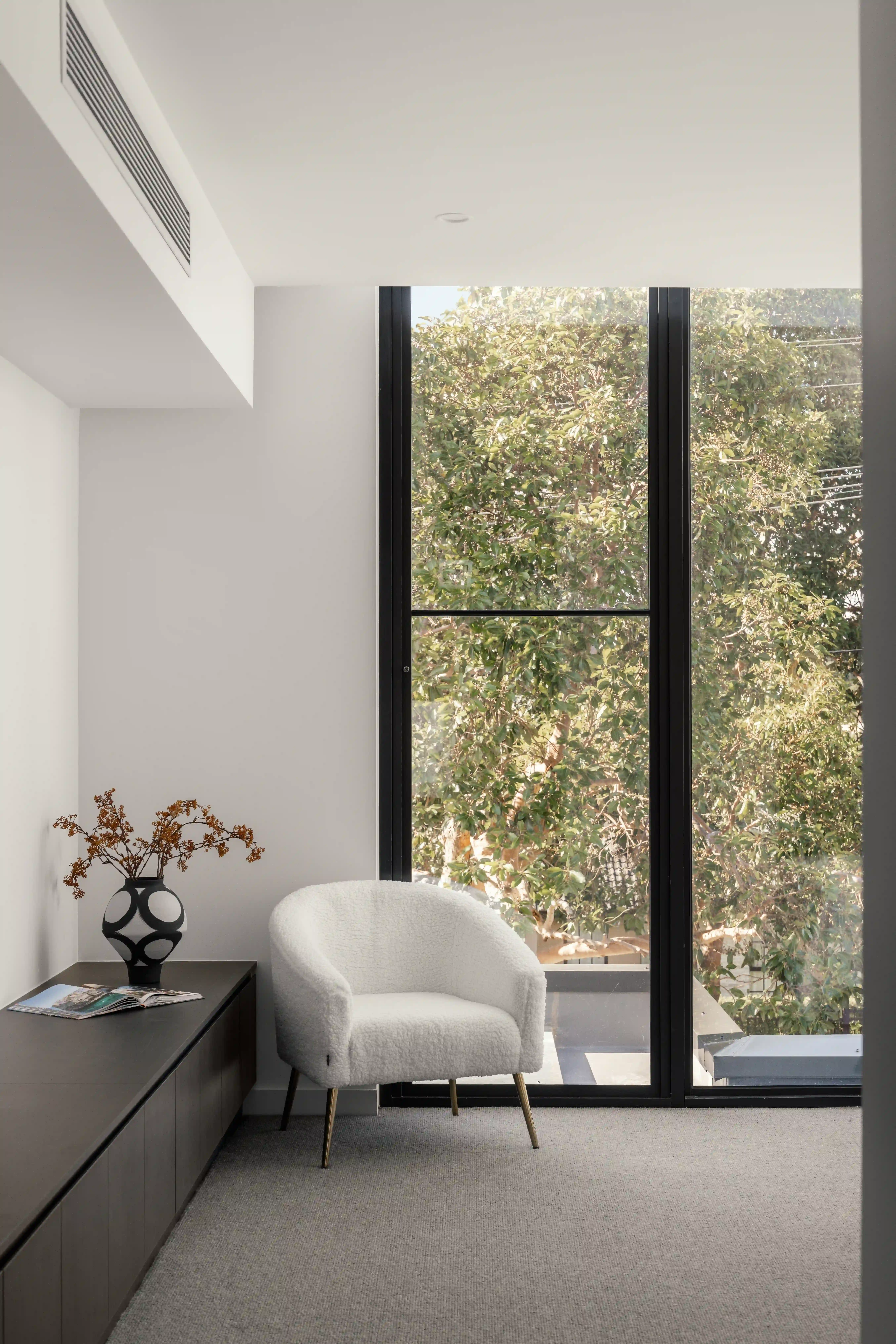 From the limestone detailing to the custom-built seating that overlooks the leafy outlook, this duplex offers a perfect balance between architectural clarity and emotional warmth — a home that feels both elegant and deeply connected to its environment.