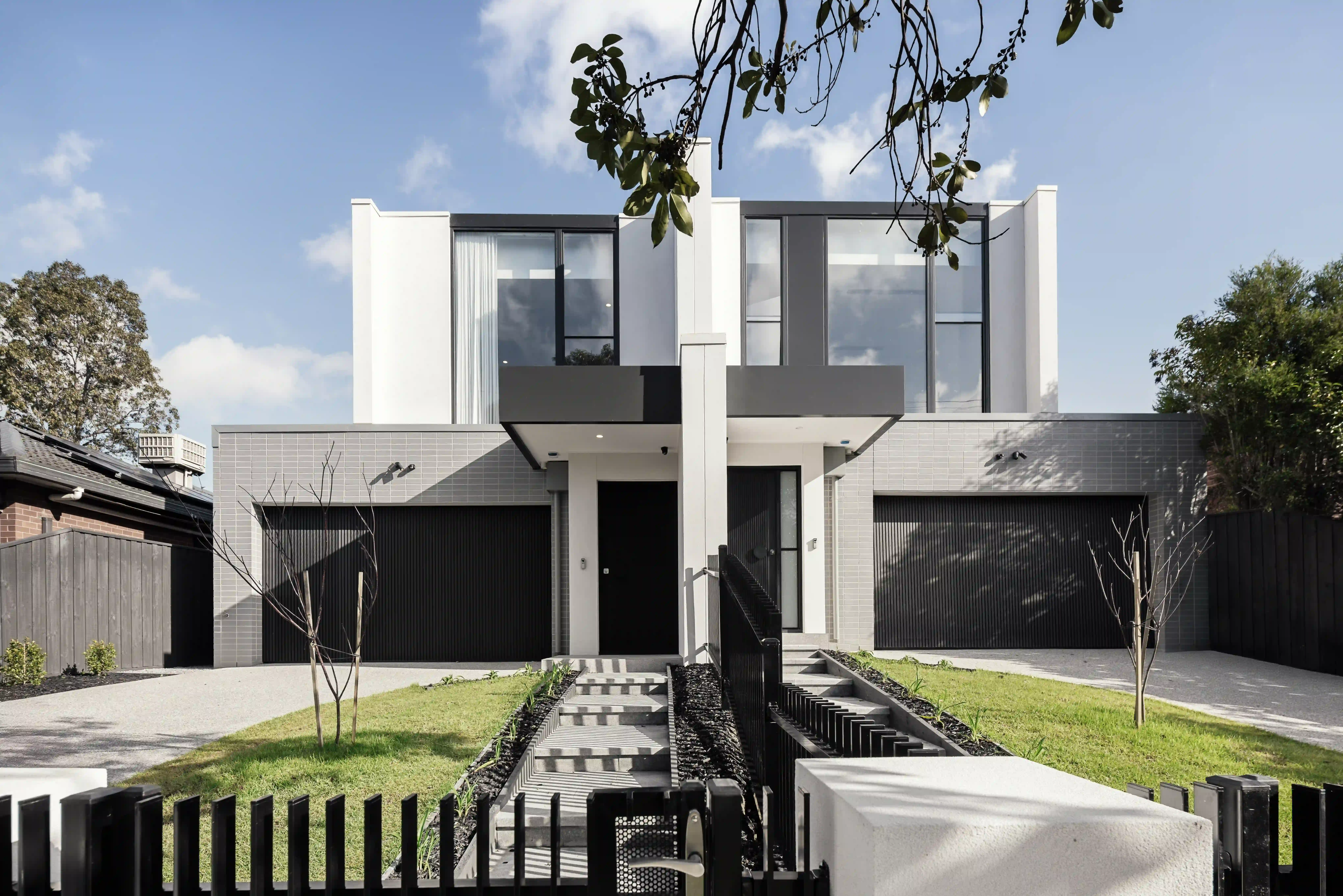 This modern duplex exudes a sense of calm sophistication, designed to embrace natural light and the surrounding greenery. Large contemporary windows frame views of mature trees, blurring the boundary between indoors and outdoors while flooding the interiors with gentle sunlight throughout the day. The façade features a timeless combination of premium bricks and Italian limestone, creating a balanced contrast of texture and tone that speaks of understated luxury.